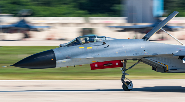 “戴上头盔就可以打仗。”对于战斗机飞行员来说,机场就是战场,升空即是作战。在战斗值班室采访时,一阵急促的战斗机警报骤然拉响。来不及道别,值班飞行员张威和罗威迅速披挂完毕,抓起飞行头盔便奔向战位。随即,两架战机伴随着轰鸣声直刺苍穹……
