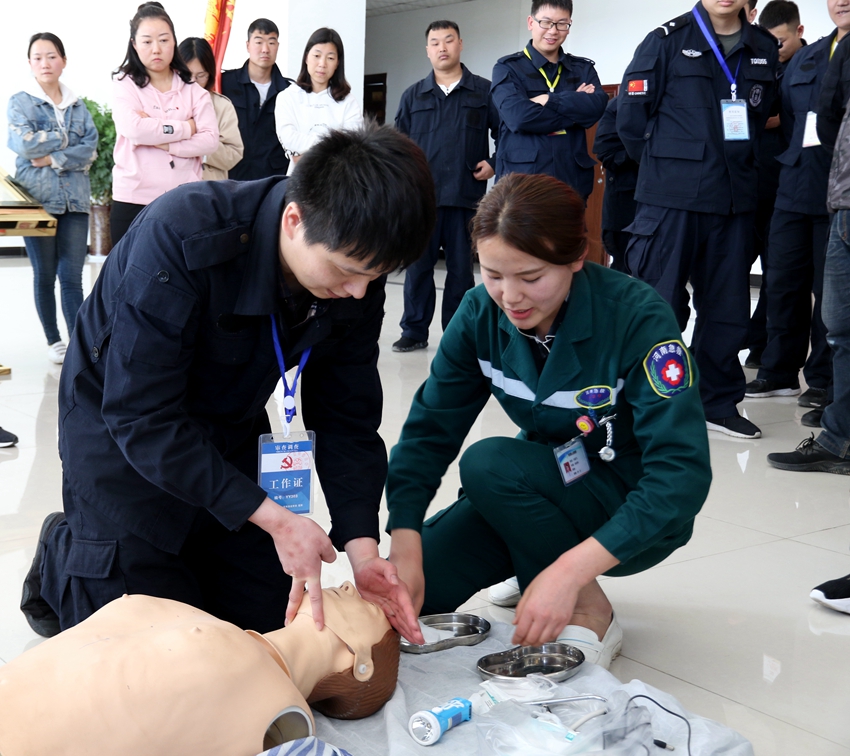 县医院急救专家对心肺复苏的人工呼吸等急救常识进行了演示和培训。宜阳分所的全体特勤人员身临其境的对消防栓、干粉灭火器、消防水带及医疗急救应急等进行了现场操作和实践演练。