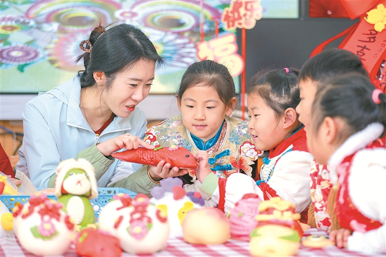 多姿多彩的非遗活动增强了新年仪式感。在辽宁省抚顺市迎元旦非遗展示展演活动中,小朋友们在非遗传承人的指导下现场体验抚顺面塑,指尖翻飞,捏出一个个栩栩如生的人物,为新年气象增添色彩。光阴之箭穿越年轮,沉淀下来的技艺传承至今,扎根百姓的民俗依旧鲜活,这展现了匠心之美、传统之美与生活之美,为新年增添独具特色的“节日味儿”。