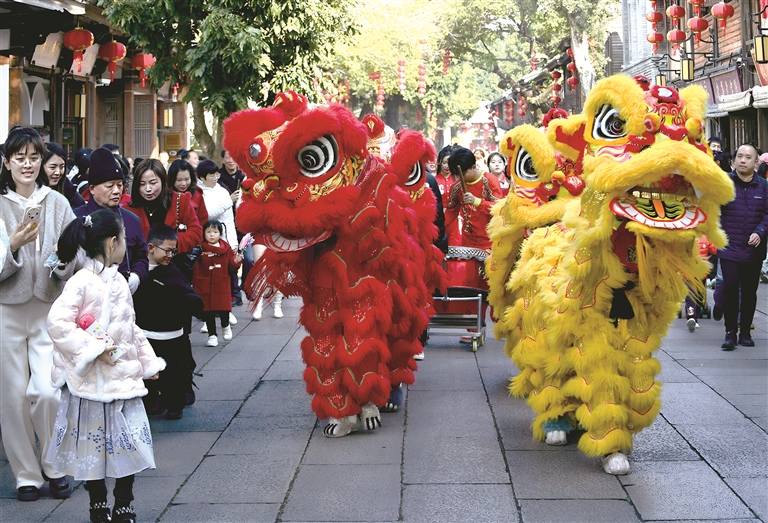 图为近日,人们在福建省福州市三坊七巷观看舞狮表演。新华社记者 魏培全 摄