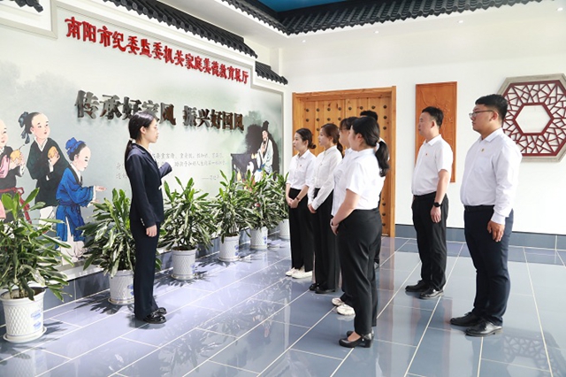 河南省南阳市纪委监委依托家风家训馆打造常态化课堂,通过分批组织参观学习,引导党员干部自觉成为家风建设的表率。图为近日,该市党员干部正在馆内接受相关培训。 张文佳 摄