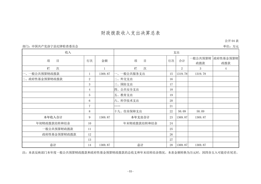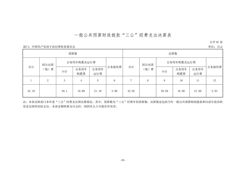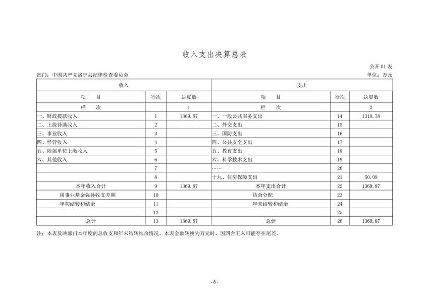 中共洛宁县纪委2020年度部门决算