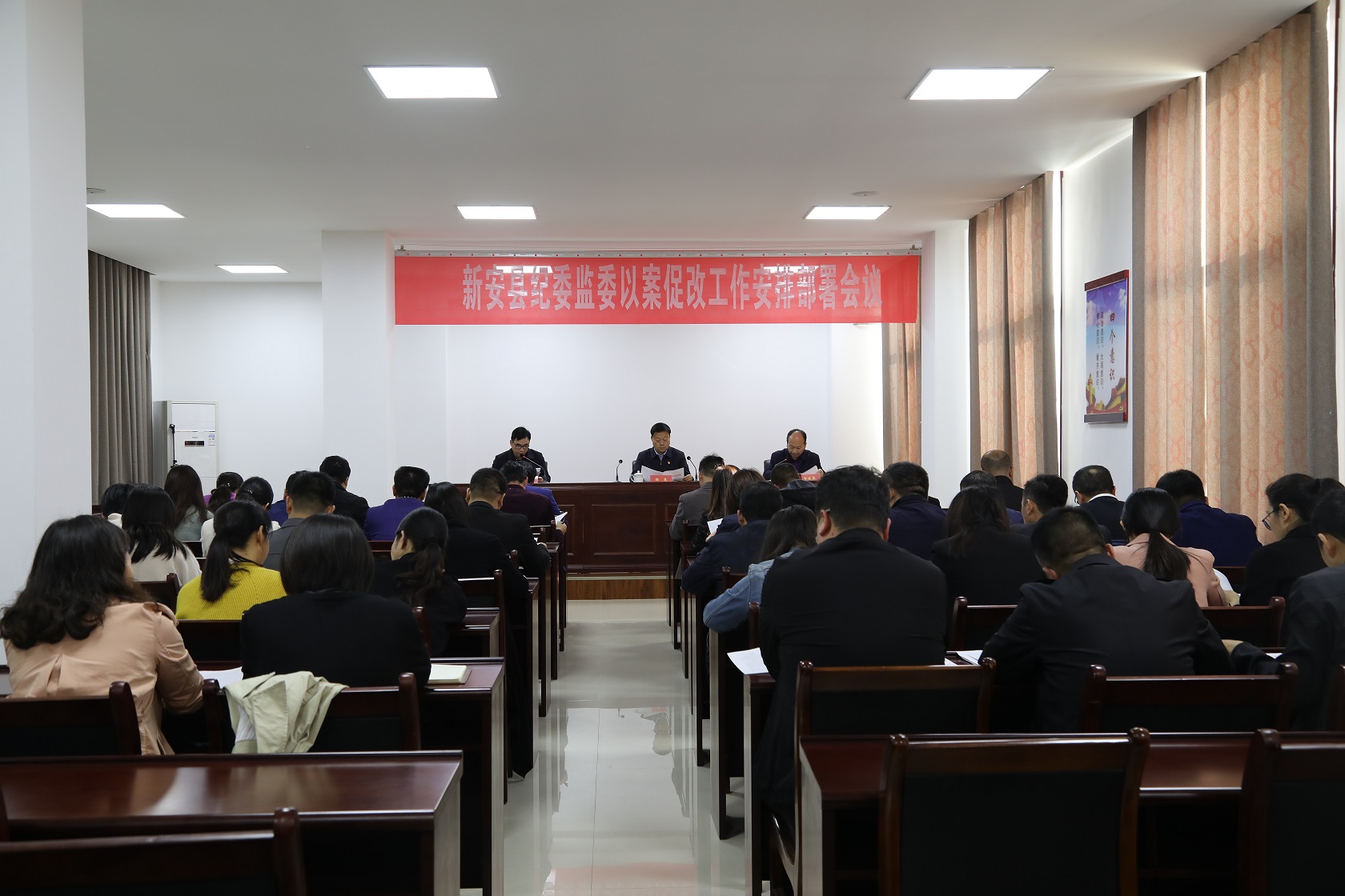 会议宣读了《关于围绕全省纪检监察系统警示教育案例在全县纪检监察系统集中开展以案促改的通知》、《关于在全县实施“五微”并治深化村(社区)组以案促改工作的指导意见》、《2020年新安县“全域整改”以案促改集中行动实施方案》。