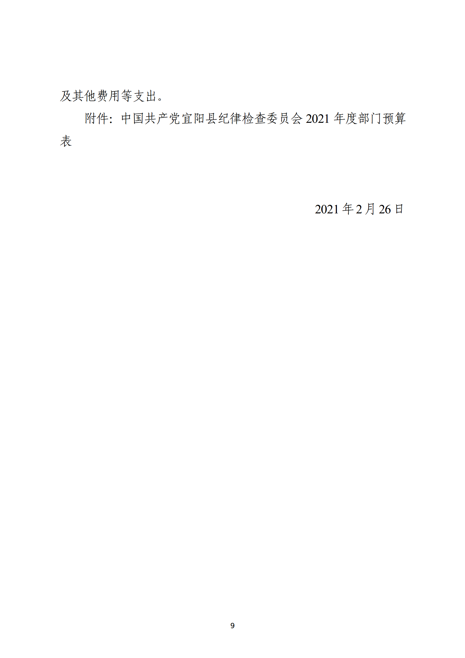 中共宜阳县纪委2021年度部门预算