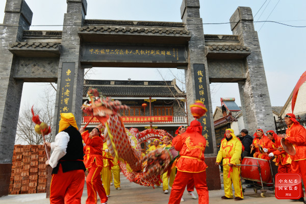 正月初五,春回大地。江苏省建湖县恒济镇建河村的“红龙”在铿锵有力的锣鼓声中开启了舞龙“破五”活动。舞龙人个个精神抖擞、动作灵敏,红龙追逐龙珠而来,上下翻腾舞动,吸引观众拍手叫好。(江苏省建湖县纪委监委供 何津蓉 摄)