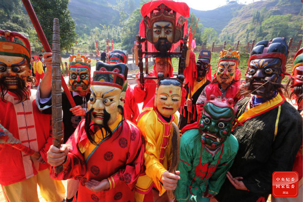 “傩”是历史久远并广泛流行于汉民族中富有宗教和艺术色彩的社会文化现象,起源于汉族先民的自然崇拜、图腾崇拜和巫术意识,赣傩是中国傩文化的重要组成部分。大年初五,江西省萍乡市安源区举行热闹了傩舞表演,居民用这一传统民俗方式表达辟邪除灾、祈求一年平顺的美好愿望。(江西省萍乡市安源区纪委监委 陈璇 摄)
