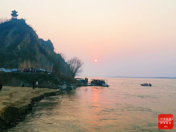 清晨,河南省郑州市黄河沿岸的村民到河岸边观河听涛,以期过去一年的烦恼随波逝去,新的一年一帆风顺。(河南省郑州市中原区纪委监委 吴赛 摄)
