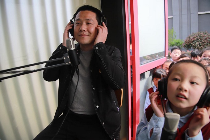 周口市淮阳区纪委监委派驻教体局纪检监察组在全区中小学组织开展“传承红色基因,书香浸润童心”主题读书活动。图为老师和学生在录制我为党发声·红色诗文线上朗读作品。(周口市淮阳区纪委监委 李昆源 摄)