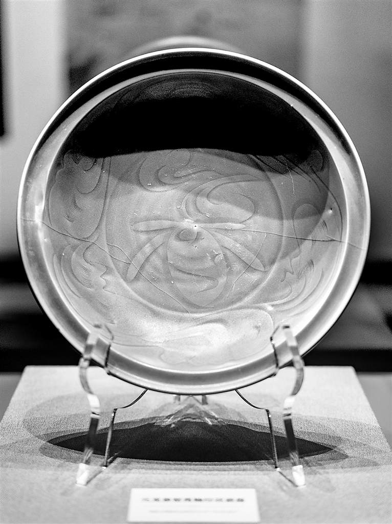 从精巧的双鱼洗到别致的高足杯,再到龙泉大盘,每一件初看平平无奇的龙泉窑青瓷瓷器中,不仅蕴藏着一个时代的审美意趣,也传递出中外交流的宝贵信息。展览中一些体型较大的瓷盘,在一堆碗碟中显得格外醒目,向我们描绘了当年海上丝绸之路“涨海声中万国商”的繁盛景象。专家表示,元代龙泉窑瓷器外销迎来鼎盛时期,窑厂开始有意识根据海外不同地区人们的生活偏好来生产定制瓷器,比如受到西亚围坐成一圈吃饭的习俗影响,远销到这一地区的碗盘形体较为硕大。