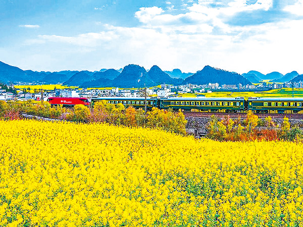 近日,中国铁路昆明局集团开行昆明至威舍Y766次旅游专列,满足了游客“联游”云贵两省的出行需求;广西铁路部门抓住旅游市场回暖时机,开行赏花踏青旅游专列;西安铁路部门开行Y536次春游定制服务列车,从咸阳火车站开往素有“秦楚咽喉”之称的陕西省镇安县……春回大地,多地迎来踏青、赏花好时节,旅游专列的开通方便了人们出游,感受春天的生机与希望。
