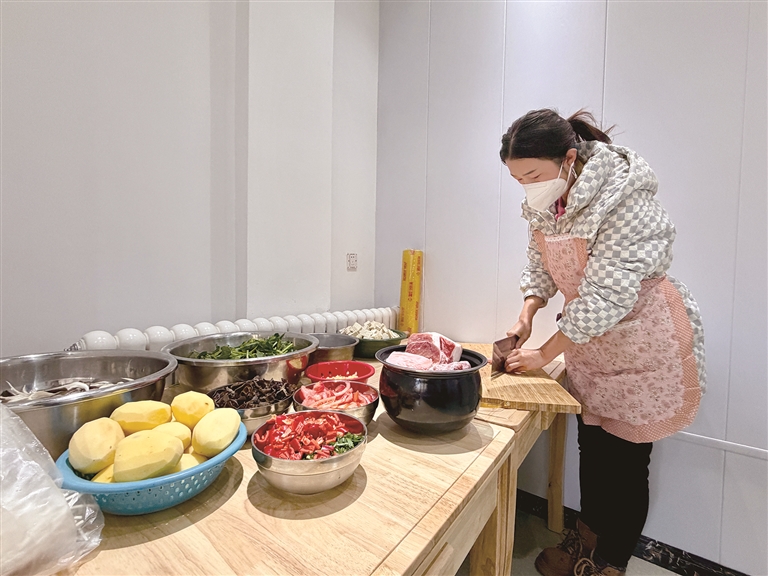 图为近日,青海省西宁市城中区元树村老年之家工作人员在备餐。 新华社记者 张子琪 摄