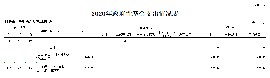 附件: 中共方城县纪律检查委员会2020年度部门预算表