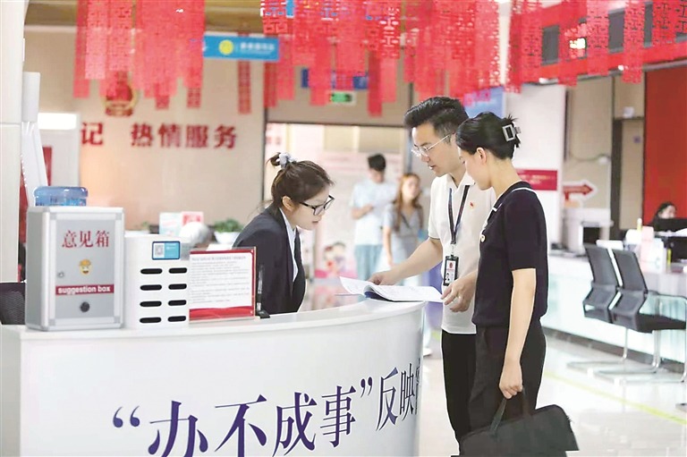 重庆市秀山土家族苗族自治县纪委监委将加强作风建设作为提升群众满意度、优化营商环境的重要抓手,紧盯不担当不作为、服务效率低下等问题,对窗口服务单位进行常态化监督检查,不断推动作风优化。图为该县纪检监察干部在县政务服务中心了解有关情况。胡程 摄