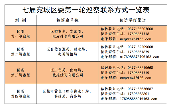 按照区委巡察工作统一部署,区委4个巡察组于2021年10月18日分别进驻区招商办、发改委、住建局、自然资源局、城市管理(综合执法)局、工信局、商务局、财政局、交通局、科技局、宛发投资有限公司、城建投资有限公司等12个单位、企业党组织开展为期60天的常规巡察。