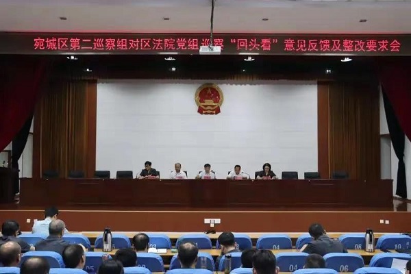 近日,六届宛城区委第十九轮巡察反馈工作全部完成。区委4个巡察组分别向红泥湾镇党委以及区检察院、法院等7个单位党组进行了现场反馈。根据区委巡察工作领导小组安排,各巡察组向被巡察党组织主要负责人移交了区委书记“点人点事点问题”台账,并向领导班子反馈了巡察“回头看”情况。