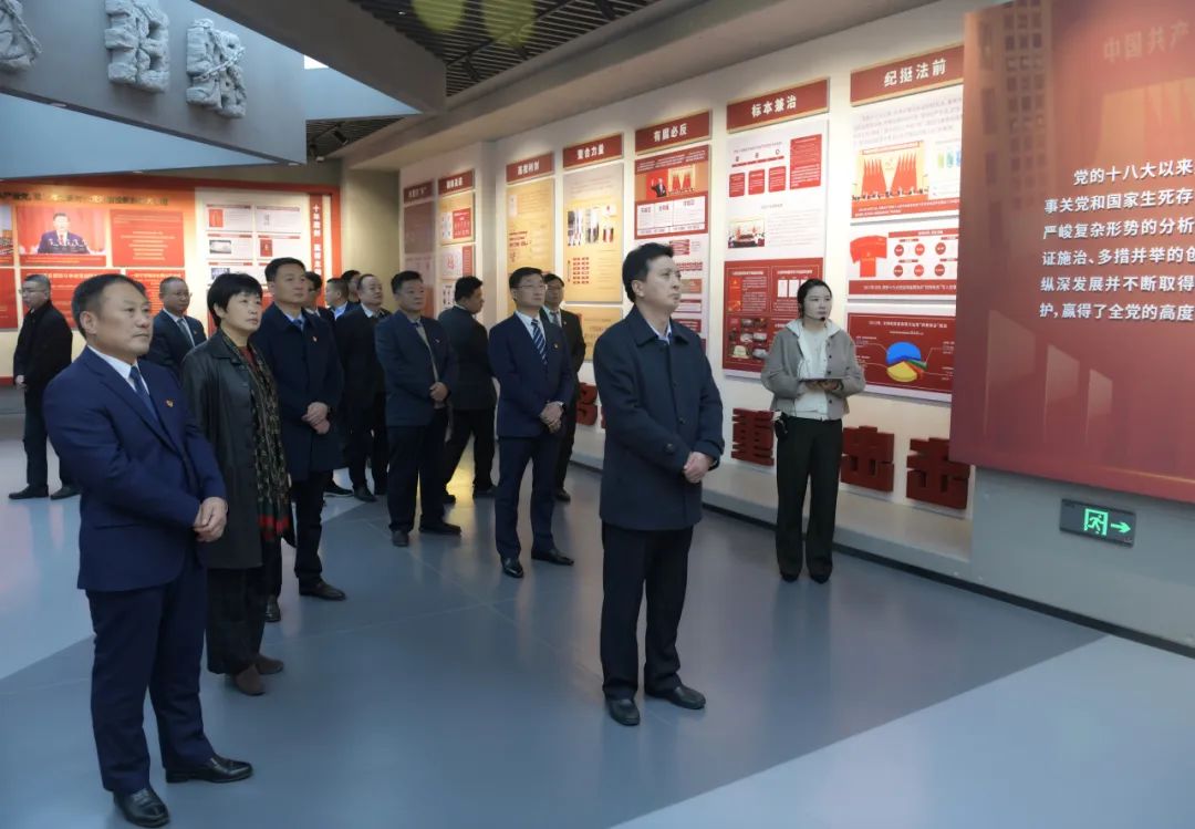 在讲解员的引领下,樊牛一行依次参观了“筚路蓝缕、玉汝于成”“玉8振金声、醒聩震聋”“治玉剜脏、从严治党”“韫玉守真、南都清风”四个主题展厅。在一幅幅图片、一个个案例、一段段视频前,大家认真观看、仔细聆听,驻足深思、深入交流,充分了解了党的十八大以来,反腐败斗争取得压倒性胜利并全面巩固的历史性成就,深刻认识了腐败给党和国家造成的严重危害和恶劣影响,以及给社会、家庭、个人带来的沉痛代价,切身体会了党中央持续推进全面从严治党的坚定决心。