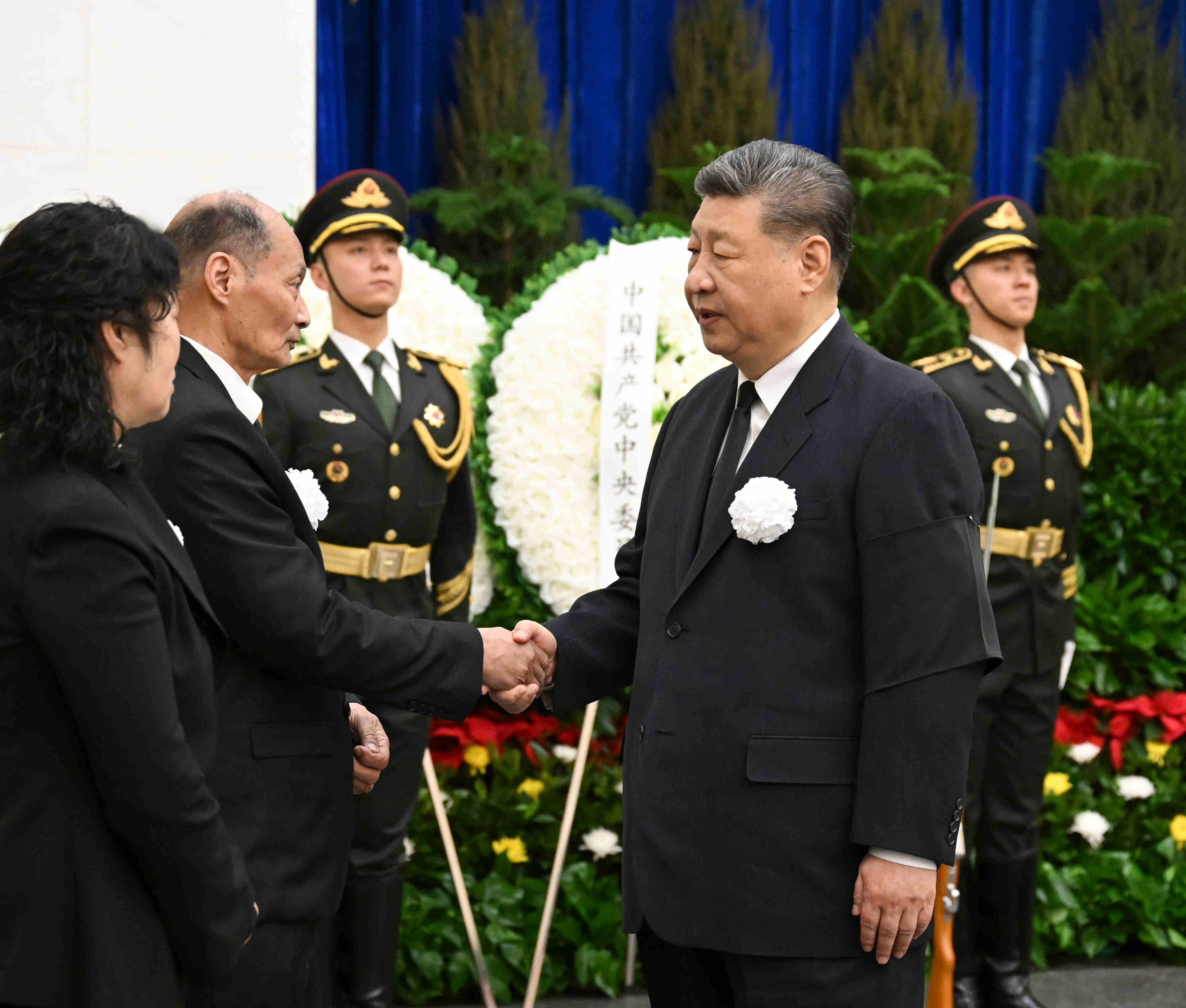 3月10日,宋平同志遗体在北京八宝山革命公墓火化。习近平、李强、赵乐际、王沪宁、蔡奇、丁薛祥、李希、韩正等前往八宝山送别,胡锦涛送花圈表示哀悼。这是习近平与宋平亲属握手,表示深切慰问。新华社记者 谢环驰 摄