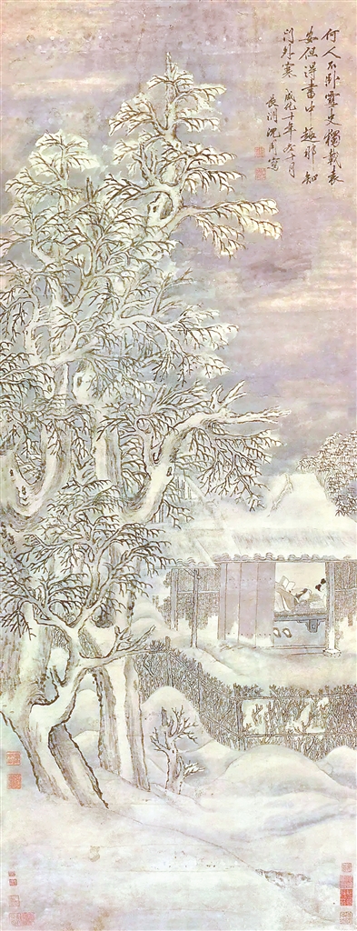 (明)沈周《袁安卧雪图》。东汉洛阳大雪,洛阳令到乡里巡看灾情、访贫问苦,来到袁安家门口大雪封门,以为袁安已经冻饿而死,便命人凿冰除雪,破门而入。但见袁安卧在床上,洛阳令问袁安为何不出门讨点儿吃的,袁安答道:“大雪人皆饿,不宜干人。”洛阳令见其品德高洁、难能可贵,当即向朝廷举荐袁安为孝廉。袁安为官后,刚正不阿,名重朝野,深受百姓敬爱。袁安卧雪的故事也因尚贤举贤的高义,流传至今。资料图片