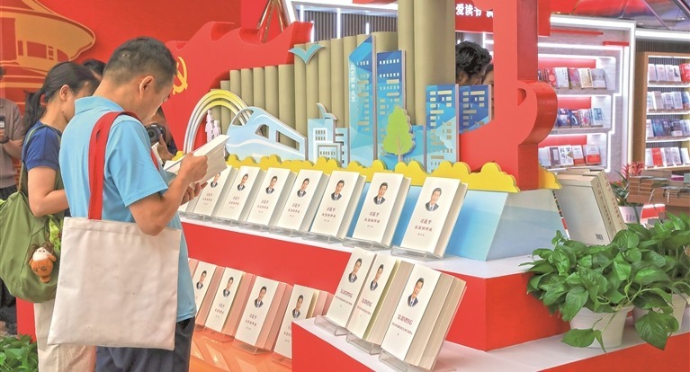 读者在北京图书大厦翻阅《习近平谈治国理政》第五卷。北京图书大厦供图