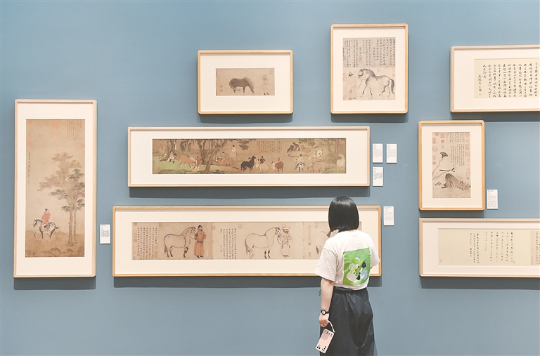 图为浙江杭州,“盛世修典——‘中国历代绘画大系’成果展·元画专题展”在浙江大学艺术与考古博物馆展出。本次专题展精选元代绘画珍品高清调色打样稿图像250余件(套),系统呈现元代绘画的丰富维度。图片来源:视觉中国