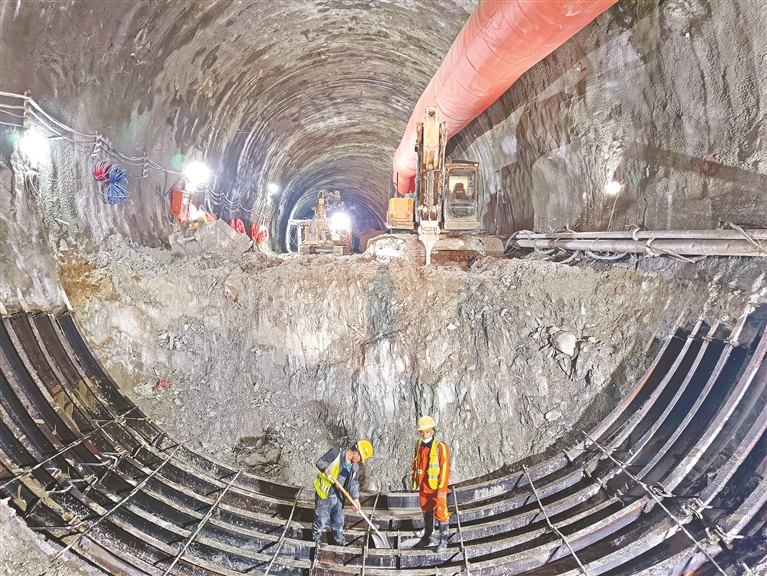 滇中引水香炉山隧洞施工作业面。