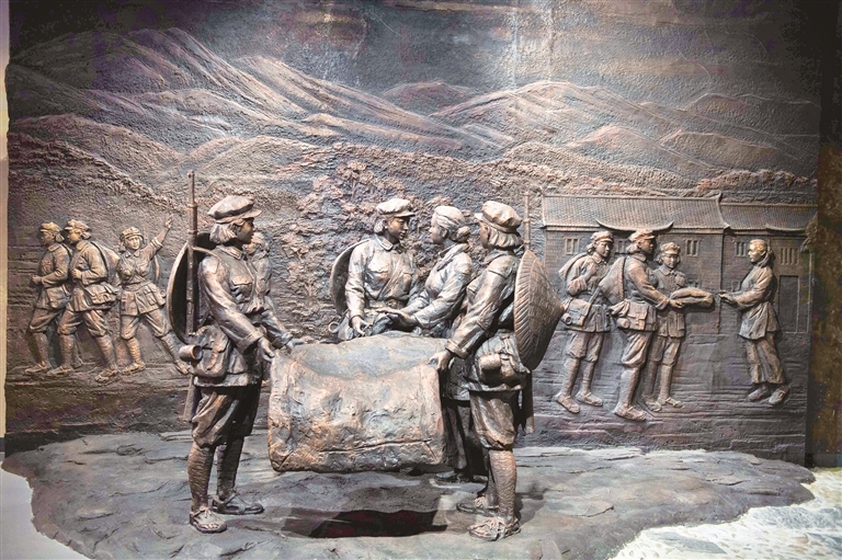 长征途中,广大红军将士始终以民为本、爱护百姓,以实际行动践行优良作风。一方面,党的领袖率先垂范、以身作则。毛泽东在行军途中,路遇因冻饿而倒卧路旁的老年农妇,立即脱下毛衣、取出被单和干粮袋予以救助。另一方面,红军战士也心系群众、为民纾困。卫生员龙思泉不辞辛劳地为老乡诊治病痛,并为治愈群众的伤寒病而坚持守护群众,因未能及时随大部队转移而被反动派杀害,当地百姓感念其恩情,称颂他为“红军菩萨”;在湖南汝城,三位红军女战士将仅有的一条被子剪下半条赠送予徐解秀老人,一条棉被,剪成两半,永不放弃,永远相连,记录着红军战士与老百姓之间的亲密感情,象征着共产党和人民群众须臾不可分离的鱼水深情……这些感人至深的故事,散落在二万五千里的漫漫征途之中,成为一段段感人至深、传颂至今的红色佳话。
