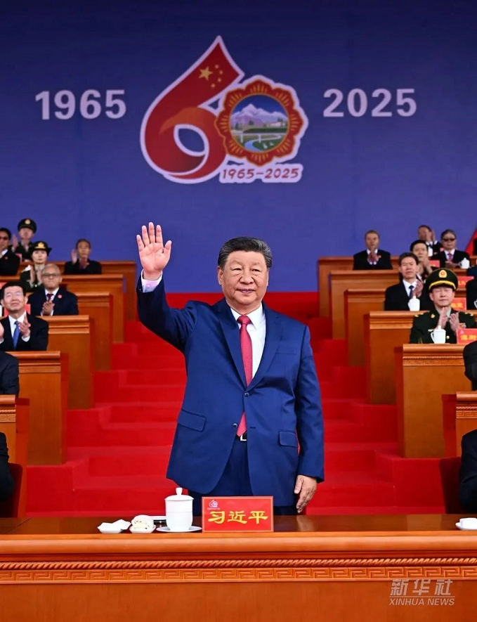 王沪宁发表讲话。他说,1965年9月,在党中央亲切关怀和党的民族政策光辉照耀下,西藏自治区宣告成立。这是西藏发展史上具有划时代意义的大事,巩固了西藏和平解放和民主改革的伟大成果,实现了西藏社会制度的历史性跨越。60年来,西藏经济社会全面发展,民族区域自治制度成功实践,民族团结日益巩固,各族人民生活蒸蒸日上,充分展现了中国共产党领导的坚强力量,充分展现了我国社会主义制度的显著政治优势。