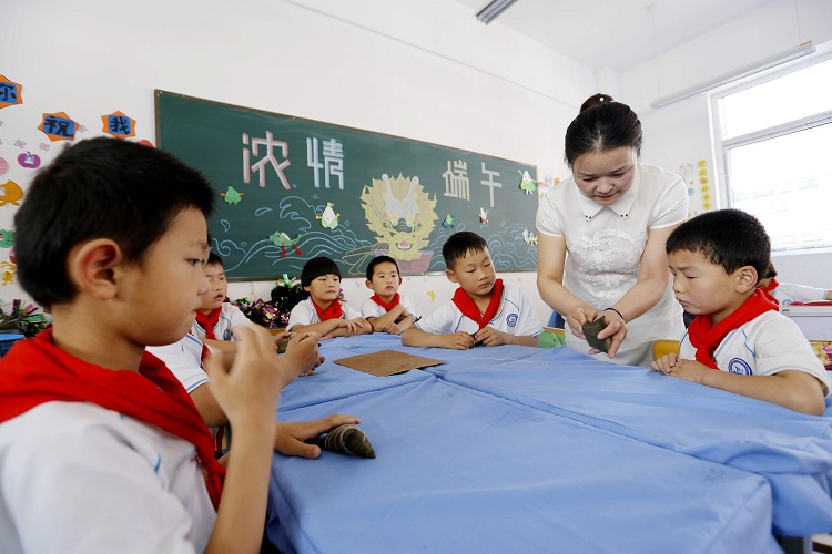 濮阳县第四实验小学为迎接端午节,举行“浓情端午”主题班会活动,老师给学生们演示制作粽子的过程,通过活动,将中国传统文化代代相承。