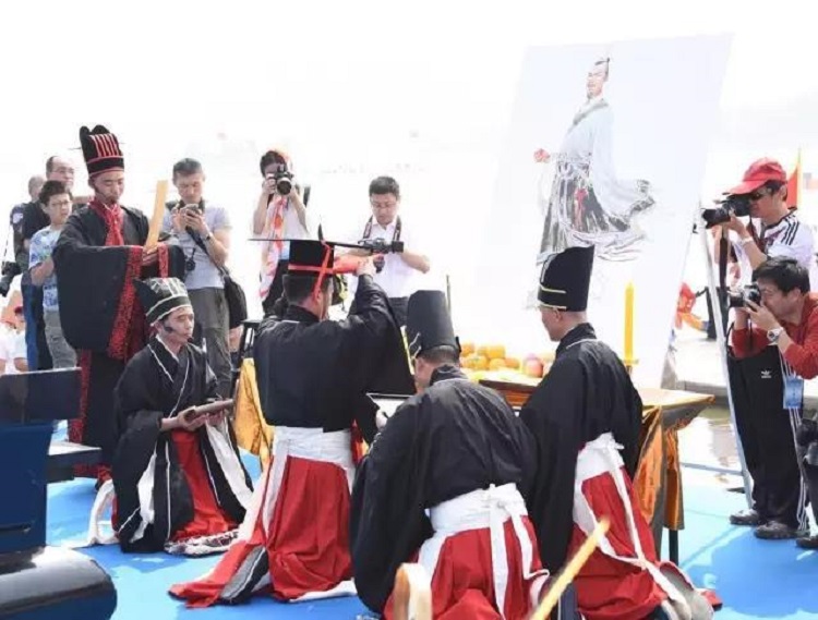 节分端午自谁言,万古传闻为屈原;堪笑楚江空渺渺,不能洗得直臣冤。端午节之际,南乐县开展祭祀屈原活动。