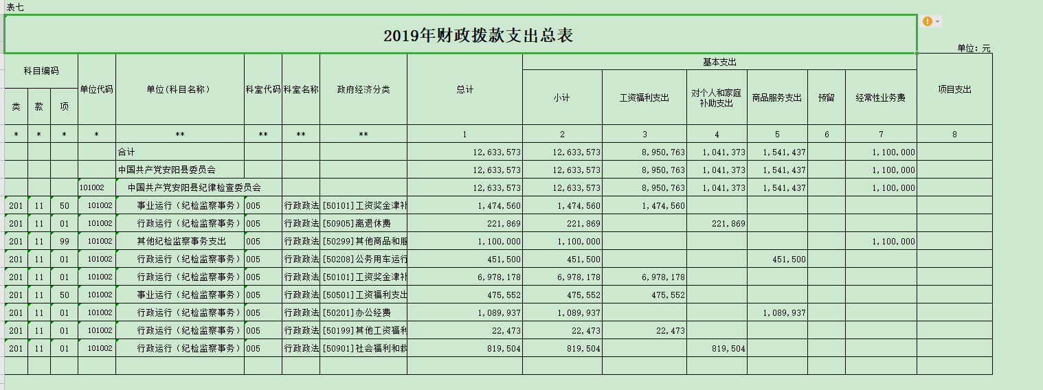 附件:安阳县纪委 、监委 201 9 年度部门预算表