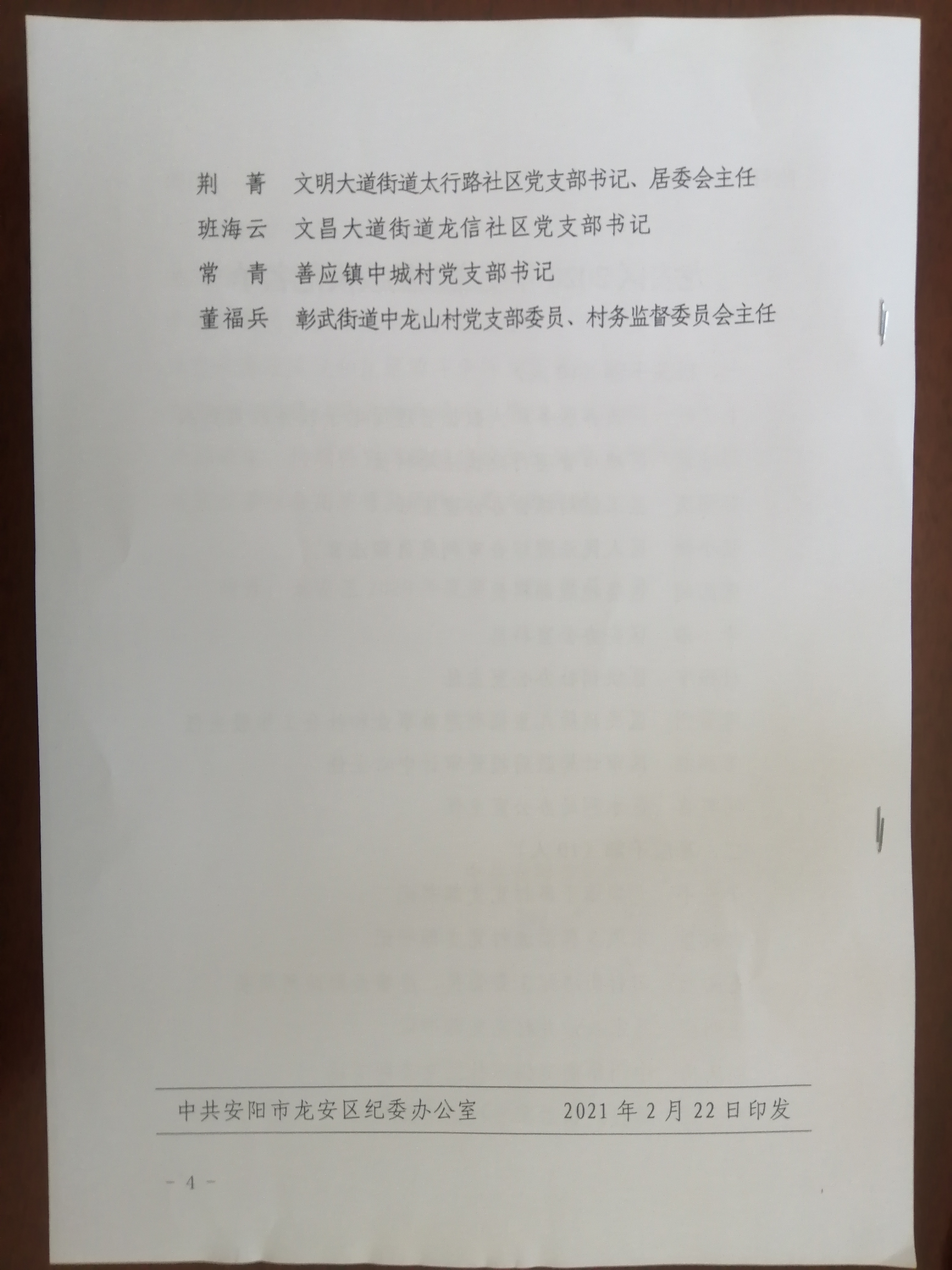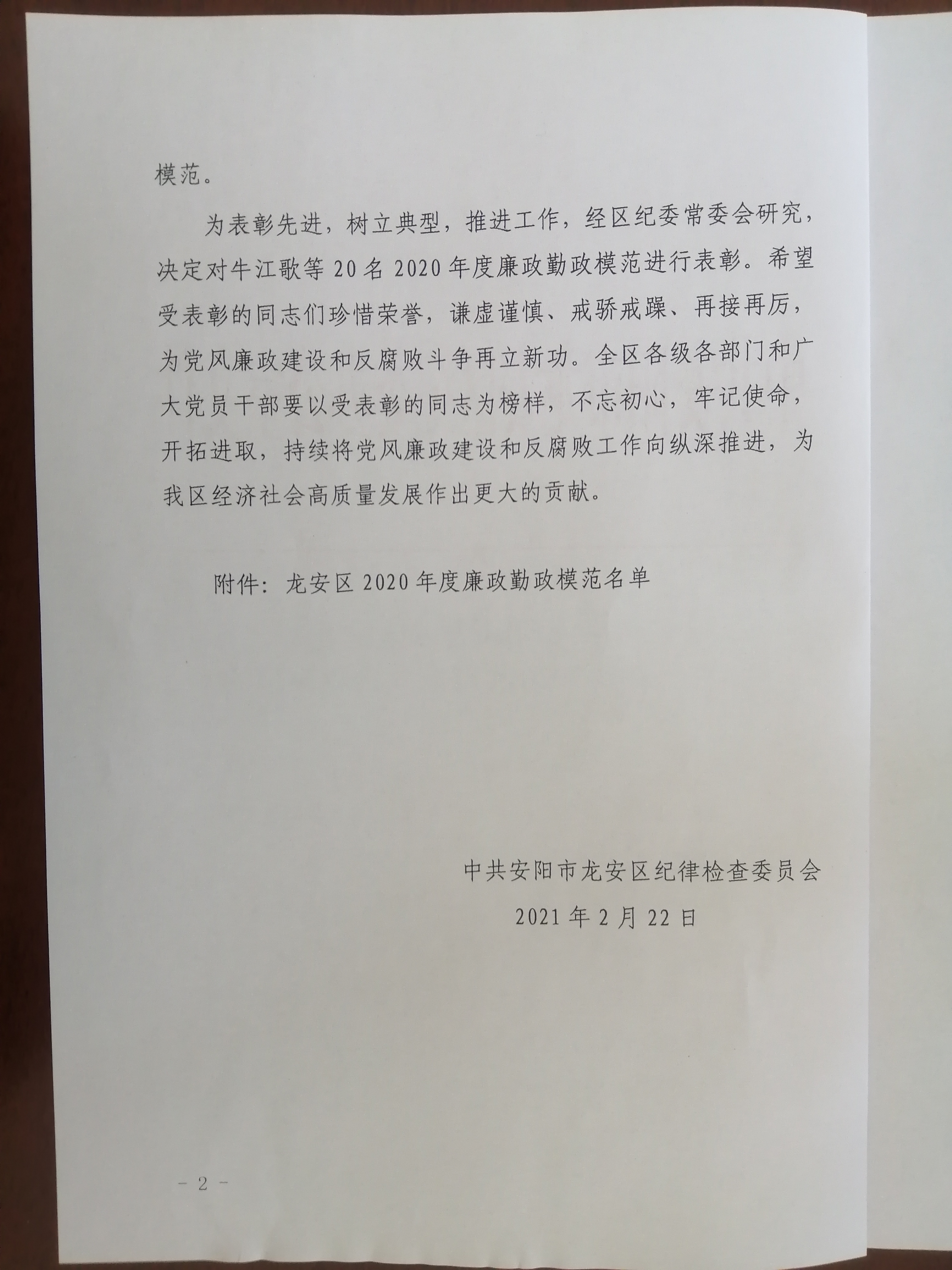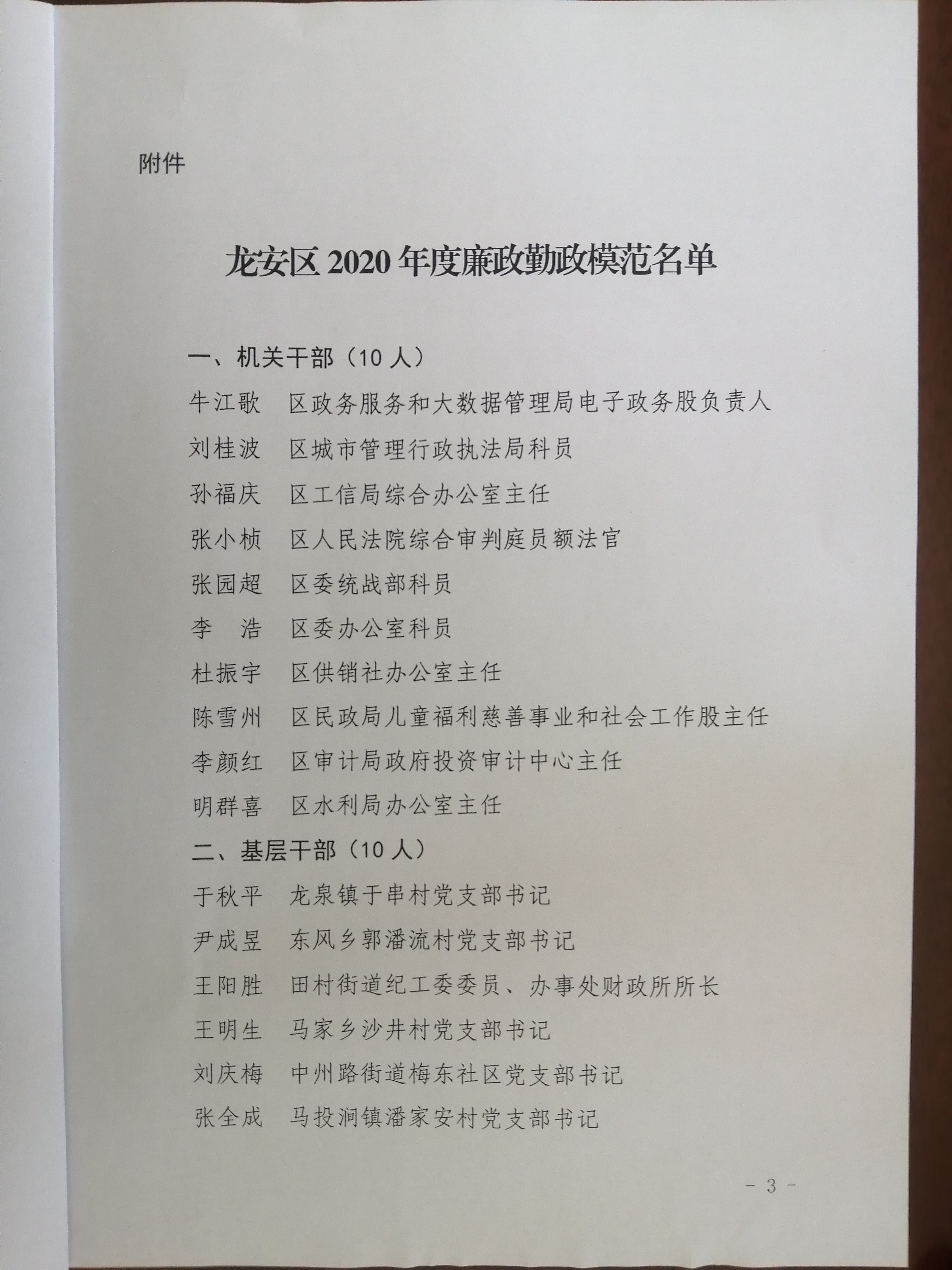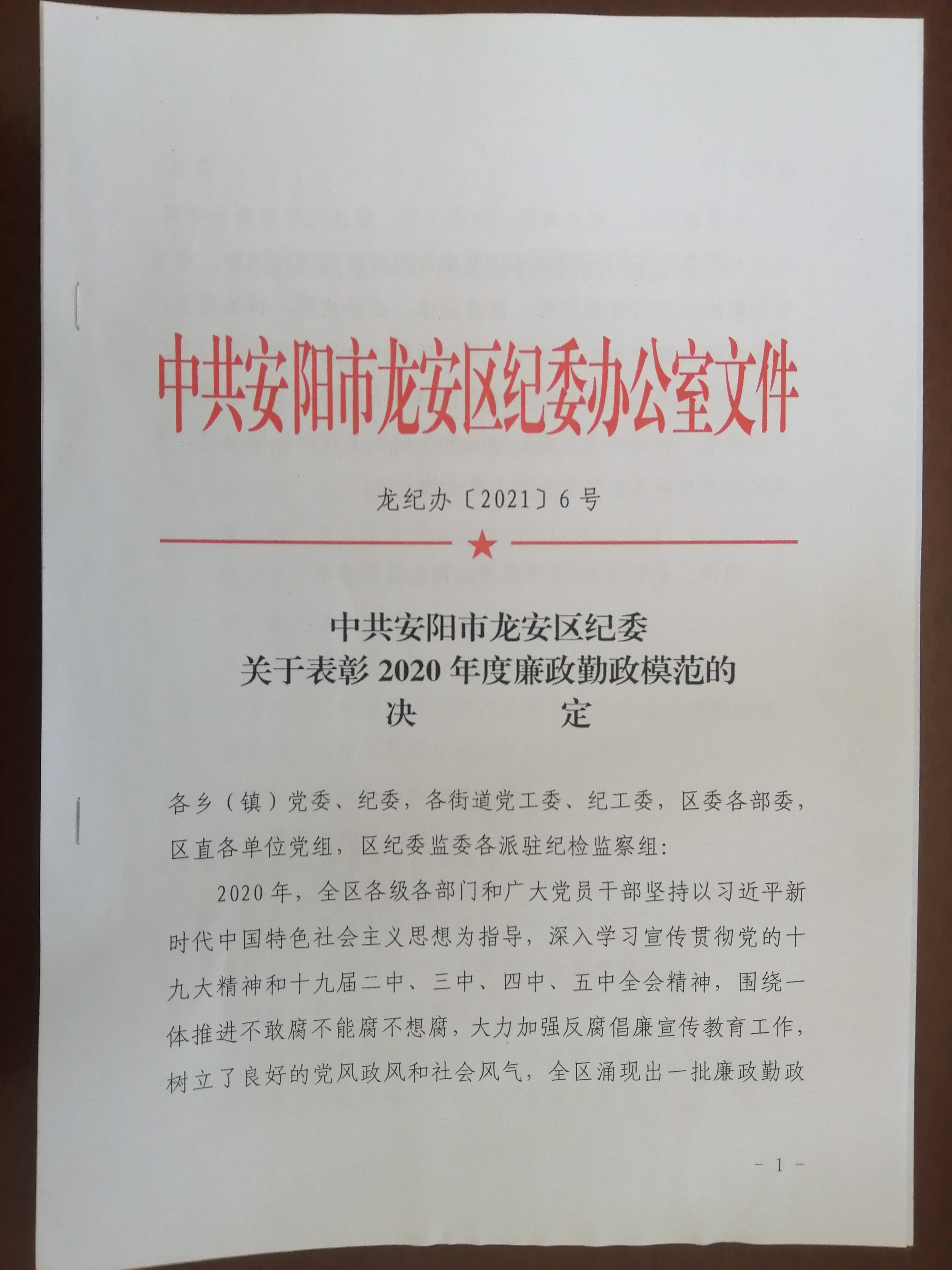 表彰决定|中共安阳市龙安区纪委关于表彰2020年度廉政勤政模范的决定