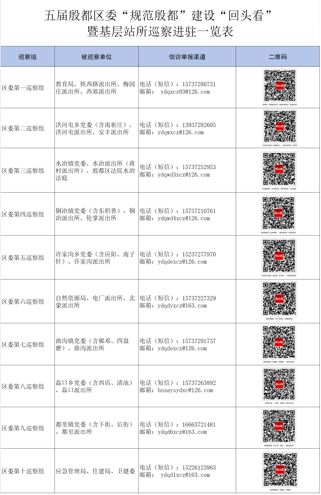 按照殷都区委统一部署,区委巡察工作领导小组于2025年11月28日召开了五届殷都区委“规范殷都”建设“回头看”暨基层站所巡察工作部署动员会,本轮巡察组建十个巡察组对辖区7个乡镇党委及下辖10个村、5个局机关党组开展“规范殷都”建设“回头看”,对辖区15所派出所、1个基层法庭开展基层站所巡察。截至12月3日,各巡察组相继完成入驻,巡察时间60天,现将有关事项公告如下:
