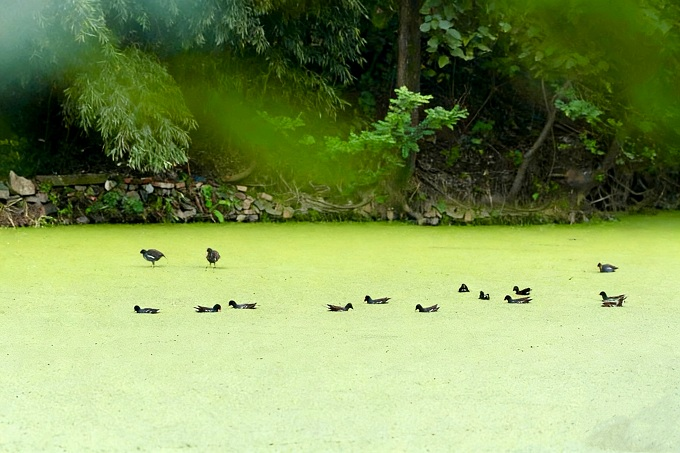 惊蛰乍暖,春水初生。鸟儿拨开一池新绿,在浮萍间游弋,红喙轻点,涟漪微漾,谱就一首灵动的春日序曲。(舞钢市纪委监委 宗秀霞 摄)