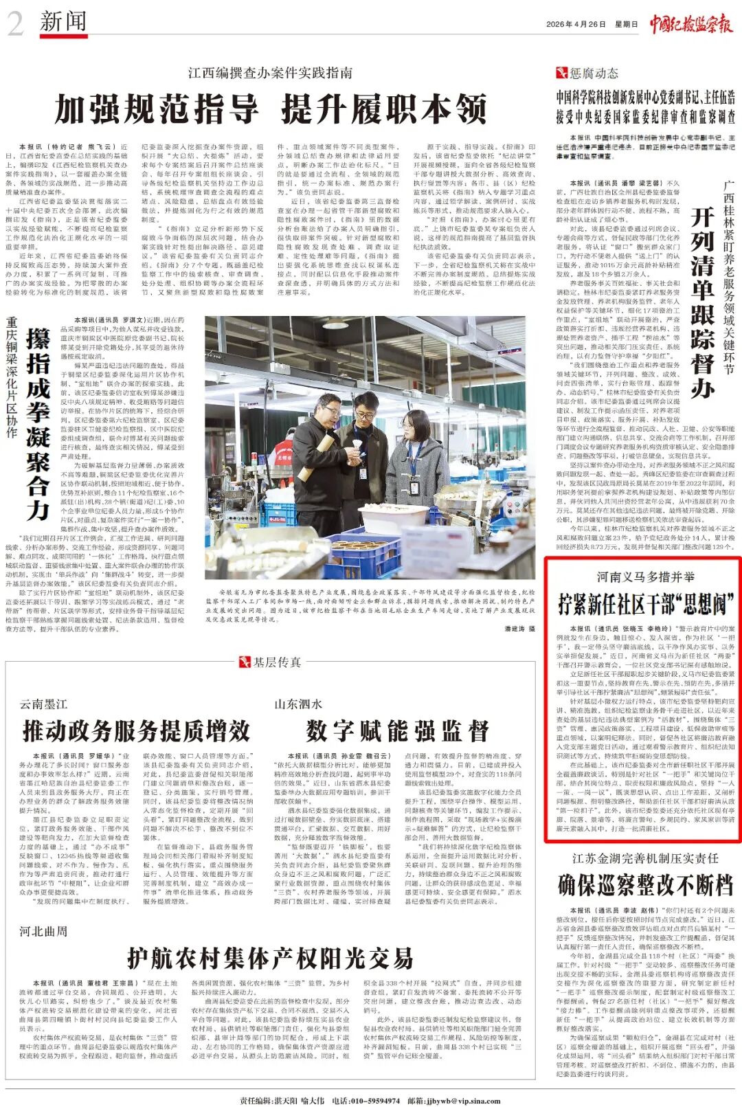 在此基础上,该市纪委监委对全市新任职社区干部开展全覆盖廉政谈话,特别是针对社区“一把手”和关键岗位干部,结合其岗位特点、职责权限和廉政风险点,坚持“一人一策、一岗一议”,既谈思想认识、点出工作差距,又剖析问题根源、指明整改路径,帮助新任社区干部扣好廉洁从政“第一粒扣子”。此外,该市纪委监委还充分依托社区现有亭廊、院落、景墙等,将廉言警句、乡规民约、家风家训等清廉元素融入其中,打造一批清廉社区。(张晓玉 李艳玲)