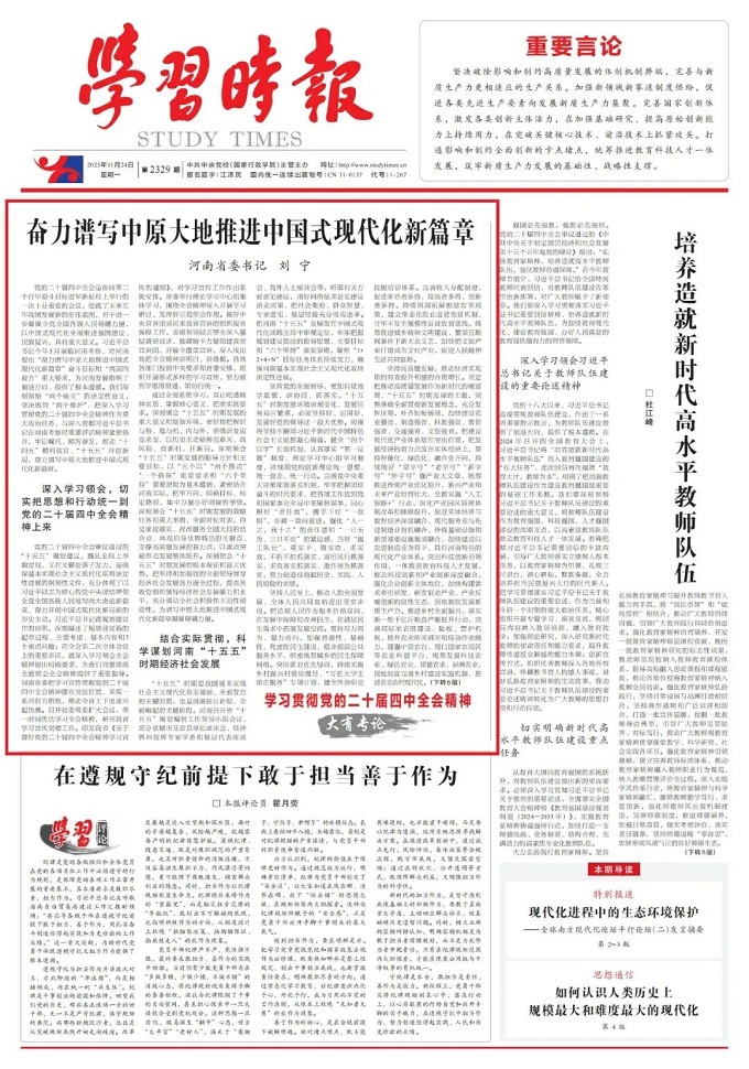 坚持党的全面领导,更加自觉地学思想、讲协同、抓落实。“十五五”时期发展环境深刻变化、发展任务艰巨繁重,必须坚持好、运用好、发展好党的领导这一最大优势。河南将坚持不懈用习近平新时代中国特色社会主义思想凝心铸魂,健全“四个以学”长效机制,认真落实“第一议题”制度、理论学习中心组学习制度,持续用党的创新理论统一思想、统一意志、统一行动。完善党中央重大决策部署落实机制,牢牢把握团结奋斗的时代要求,把各项工作放到党和国家事业全局中来聚智谋事,同心耕好“责任地”,携手下好“一盘棋”,步调一致向前进。强化“人一之,我十之”的责任感和“一日无为、三日不安”的紧迫感,当好“施工队长”,重实干、做实功、求实效,不折不扣抓落实、雷厉风行抓落实、求真务实抓落实、敢作善为抓落实,努力创造经得起历史、实践、人民检验的实绩。