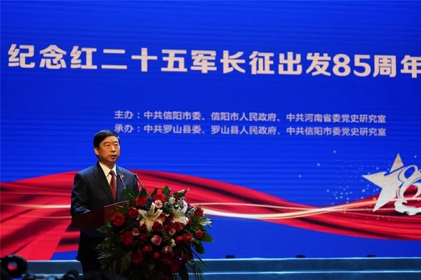 谢玉安在致辞中说,大会既是对红25军长征出发85周年的纪念,也是为了进一步贯彻落实好习近平总书记重要讲话精神,在深入学习和不断领悟中,弄清楚我们从哪里来、往哪里去,从而更好地传承弘扬长征精神和大别山精神,鼓舞和激励我们不断攻坚克难、从胜利走向胜利,为中原更加出彩作出更大贡献。