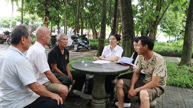 图为刘琪(中)正在向群众了解基层党风廉政建设有关情况。唐青青 摄