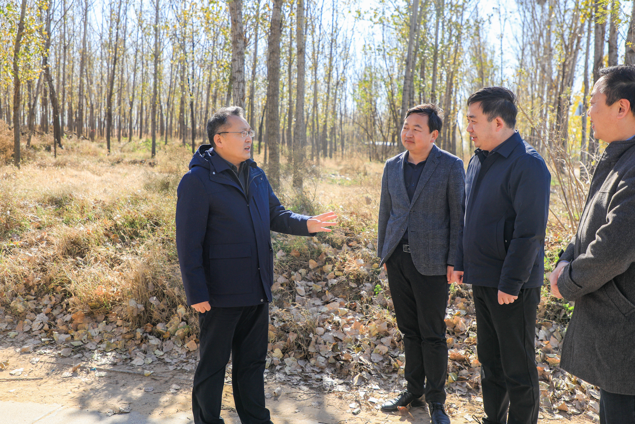 在冯堂办事处宋家村,鲍晋选实地检查林地资源管护、防火防虫等情况。他强调,全面推行林长制是建设生态文明的制度创新,乡镇、村级林长作为“前沿指挥员”,要切实扛起责任,深入一线,真巡实查,确保责任链条环环相扣。要紧盯重点区域、防火高危时段和风险环节,深入开展风险隐患排查,建立问题台账,扎实有效整改。要常态化开展林地防火宣传教育,健全多部门联防联控机制,全面提升全民防火意识,筑牢生态安全屏障。