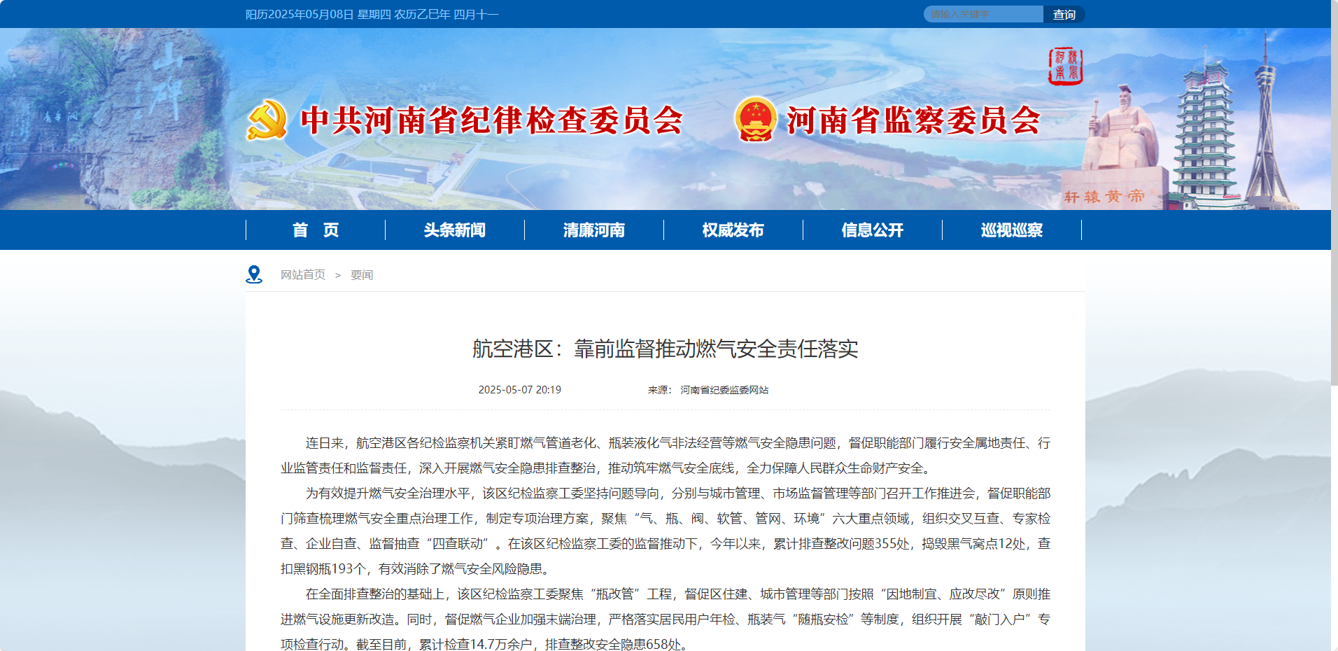 燃气安全事关千家万户。下一步,航空港区纪检监察工委将通过不定期抽查、“回头看”等方式,压实职能部门主体责任,巩固监督成效,推动燃气安全管理常态化、长效化,以更有力的监督执纪,坚决防范燃气安全事故发生,为全区经济社会高质量发展提供坚实安全保障。(蒋洪超 王浩然)